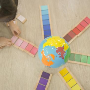 Our primary classroom contains carefully designed materials to let children explore and put names to a variety of sensations: size, color, shape, texture, scent, sound, and more. Children take pleasure in games of organization: sorting or ordering objects, counting beads, etc. Other activities provide physical, tangible intr
